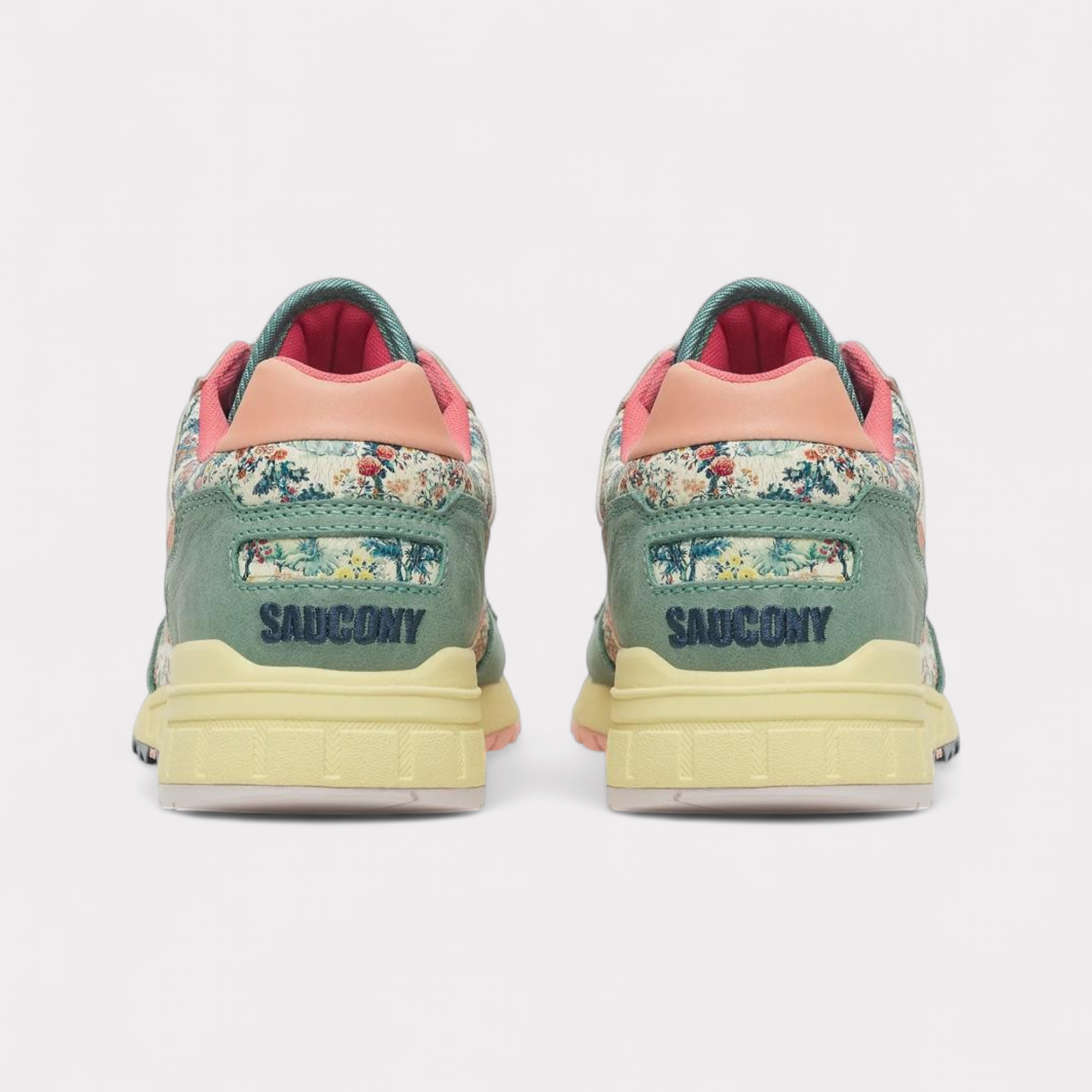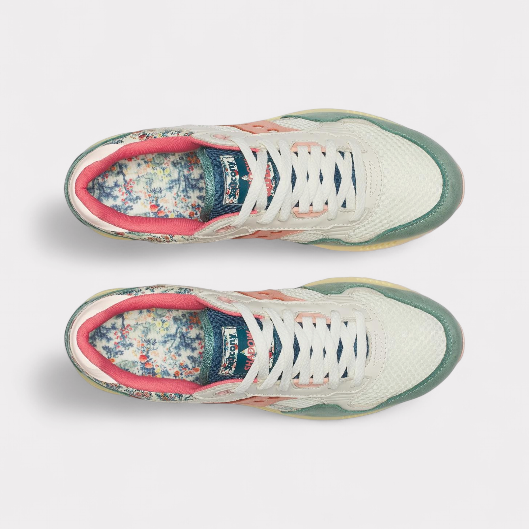 Each shoe features multicolour color blocking and rich textures, combining air mesh, leather, and a printed pattern on glossy craquelé suede. The result is a design that feels as if it has been discovered and cared for over time.