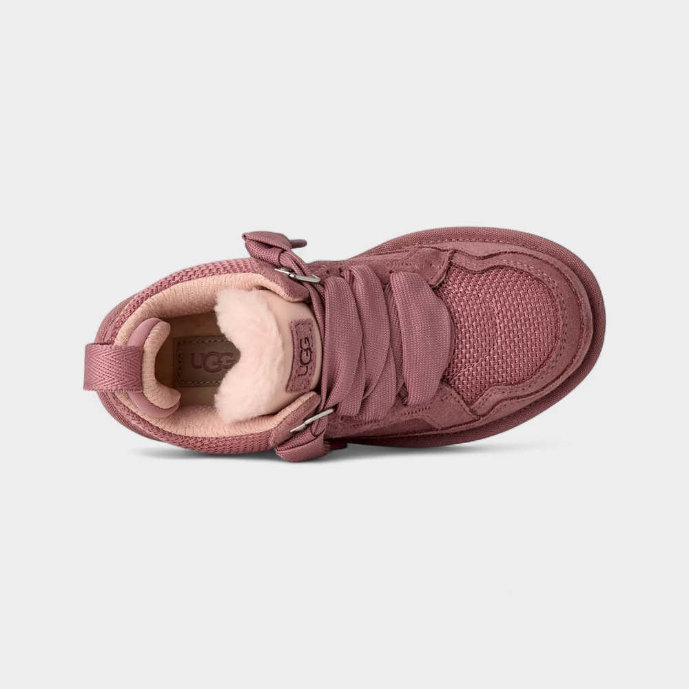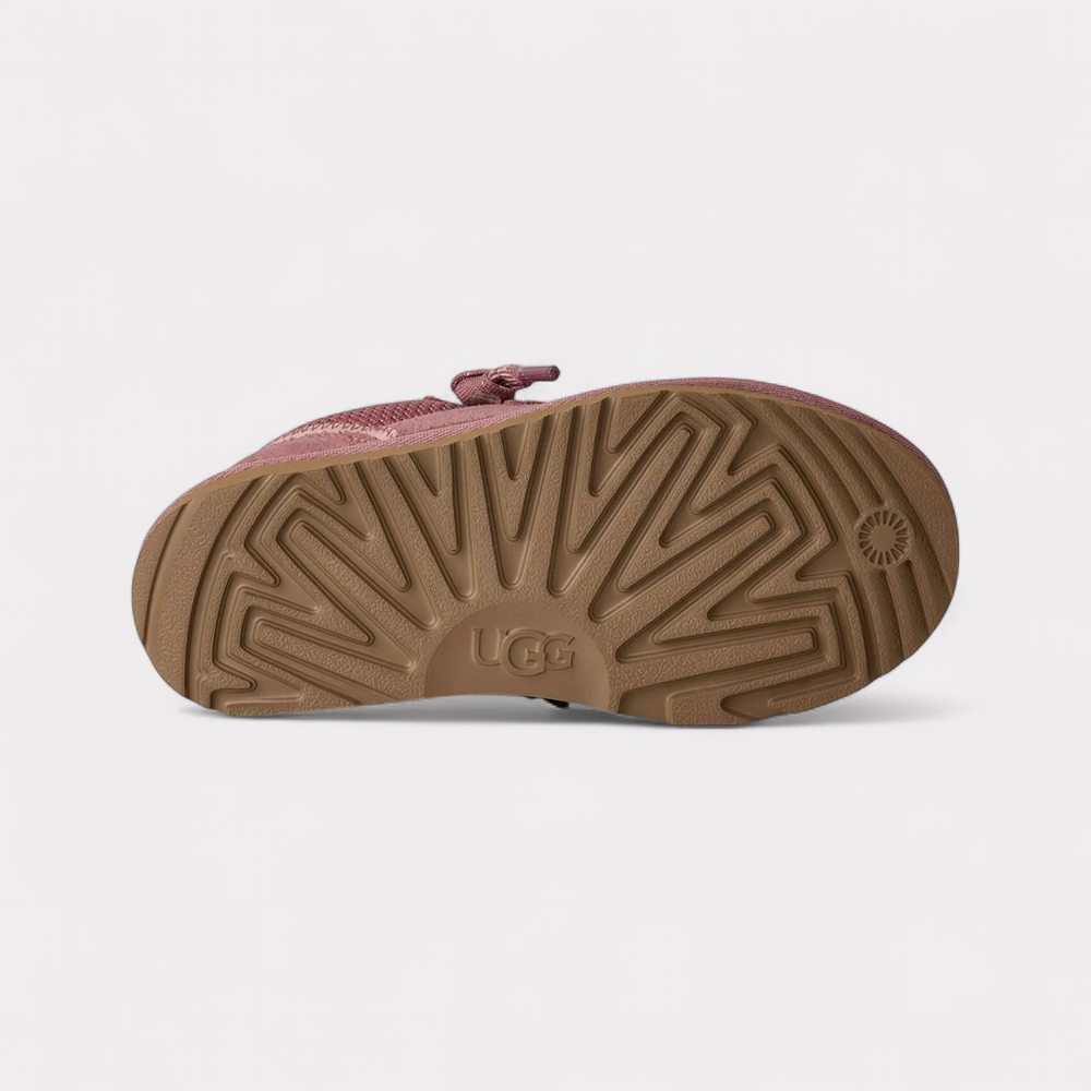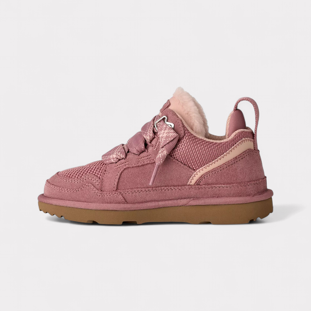 The UGG Lowmel is a modern, casual lace-up shoe that combines the comfort of UGG with a sporty, urban silhouette. The model combines durable ballistic canvas mesh with soft suede leather, offering a balanced blend of robustness and flexibility. The characteristic low-top shape is reminiscent of a mix between a boot and a sneaker, making it versatile for everyday wear. Typical of UGG, the Lowmel also focuses on sustainable materials—for example, by using EVA foam made from rainwater-grown sugar cane instead of petroleum. Recycled laces and subtle brand logos on the tongue and heel underline the clean, modern look. The Lowmel combines functional design, environmentally conscious manufacturing, and the unmistakable comfort for which UGG is known worldwide.