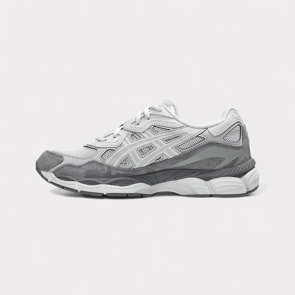Der GEL-NYC™-Sneaker lässt sich von traditionellen und modernen Performance-Laufstilen inspirieren. Seine Obermaterialkonstruktion bezieht sich auf den GEL-NIMBUS™ 3 Schuh aus den frühen 2000er Jahren und vermischt ihn mit verschiedenen Verzierungen des GEL-MC PLUS™ V Designs. Das Tooling kontrastiert die Retro-Einflüsse des Obermaterials, indem es das Tooling-System des GEL-CUMULUS™ 16-Schuhs verwendet. Durch eine Kombination aus leichten Schaumstoffen und GEL™ Technologie-Einsätzen sorgt diese Zwischensohlen-Formation für fortschrittlichen Unterfuss-Komfort.