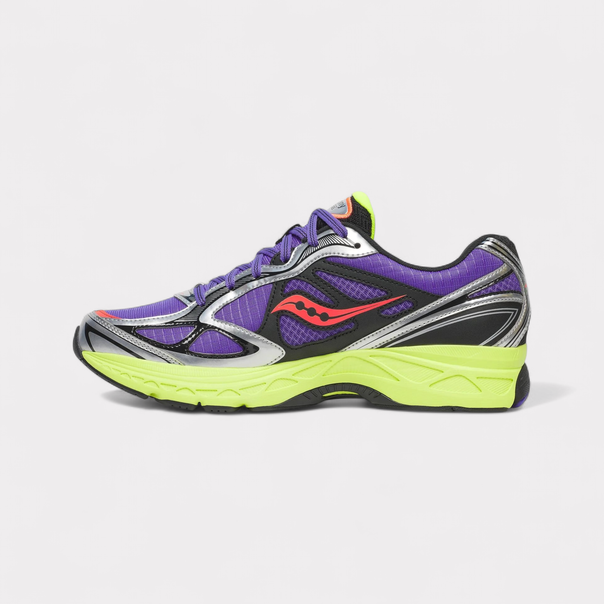 Der Saucony ProGrid Guide 7 Hi Octane ist ein moderner Lifestyle-Sneaker, der die klassische Running-DNA von Saucony mit einem auffälligen und energiegeladenen Design kombiniert. Inspiriert von Performance-Laufschuhen der 2000er Jahre überzeugt dieses Modell mit seiner markanten Silhouette, einem atmungsaktiven Mesh-Obermaterial und stabilisierenden Overlays für optimalen Halt im Alltag. Die bewährte ProGrid-Dämpfungstechnologie sorgt für hervorragende Stoßabsorption und angenehmen Tragekomfort, während die robuste Gummiaußensohle zuverlässige Traktion auf urbanen Oberflächen bietet. Das Design ist vom Hi Octane Konzept inspiriert und steht für Geschwindigkeit, Energie und Dynamik. Deshalb erscheint der Sneaker als Teil einer Hi Octane Capsule Collection mit drei unterschiedlichen Farbvarianten, die die Performance-Ästhetik und den futuristischen Running-Look neu interpretieren. Der Saucony ProGrid Guide 7 Hi Octane ist die ideale Wahl für Sneaker-Liebhaber, die Retro-Running-Design, Komfort und einen sportlich-modernen Streetwear-Style in einem Schuh vereinen möchten.