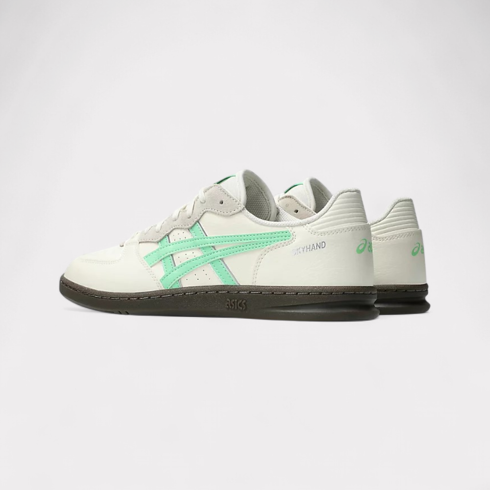 Der SKYHAND OG-Sneaker kehrt mit seinem ursprünglichen Handball-Erbe zurück. Die schlankere Court-Silhouette dieses Schuhs mit seiner Design-DNA aus den 1990er Jahren wurde mit modernen Komforteigenschaften überarbeitet. Die aktualisierte Konstruktion des Schuhs besteht aus Kunstleder und Lederverkleidungen sowie Gummisohlen. Zu den wichtigsten Details gehören ein vom Vintage-Stil inspirierter Stoff, Ziernähte und eine Blumenöse. Der Fersenkeil enthält außerdem eine EVA-Dämpfung. Die Retro-Design-Elemente werden mit einer modernisierten Fersenkappe und einer Einlegesohle kombiniert, um sicherzustellen, dass ein Premium-Gefühl durchgehend vorhanden ist.